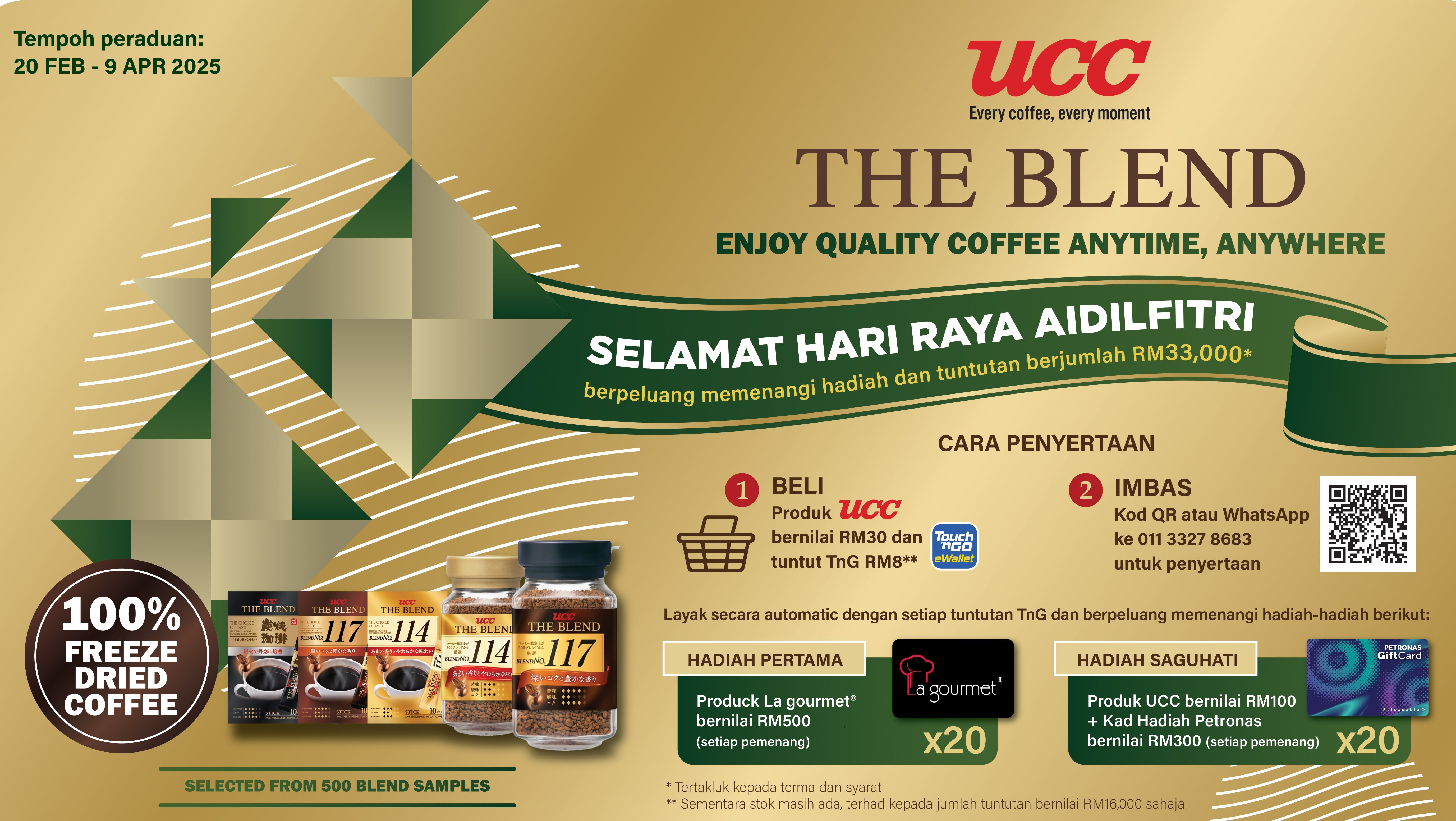 - Kempen UCC ‘Selamat Hari Raya Aidilfitri’ nilai berjumlah RM33,000 (“Kempen / Peraduan”) ini dianjurkan oleh UCC Coffee Malaysia Sdn Bhd (“Pihak Penganjur” atau “Penganjur”).
